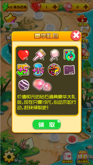 1、糖果主题设计匠心独运,采用高饱和度色彩搭配,每一颗糖果都经过专业美术团队精心绘制,从水果糖到巧克力糖,种类丰富多样。