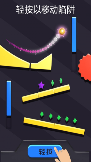 点击谜题是一款融合物理引擎与休闲解谜的创意游戏,玩家将操控弹珠在精心设计的赛道上滚动,通过点击操作改变重力方向、触发机关与弹跳躲避障碍,收集星星与宝石并最终抵达终点游戏采用简洁清新的视觉风格与流畅的物理模拟,结合丰富多样的关卡与皮肤系统,高度还原弹珠滚动的真实感与解谜的成就感。