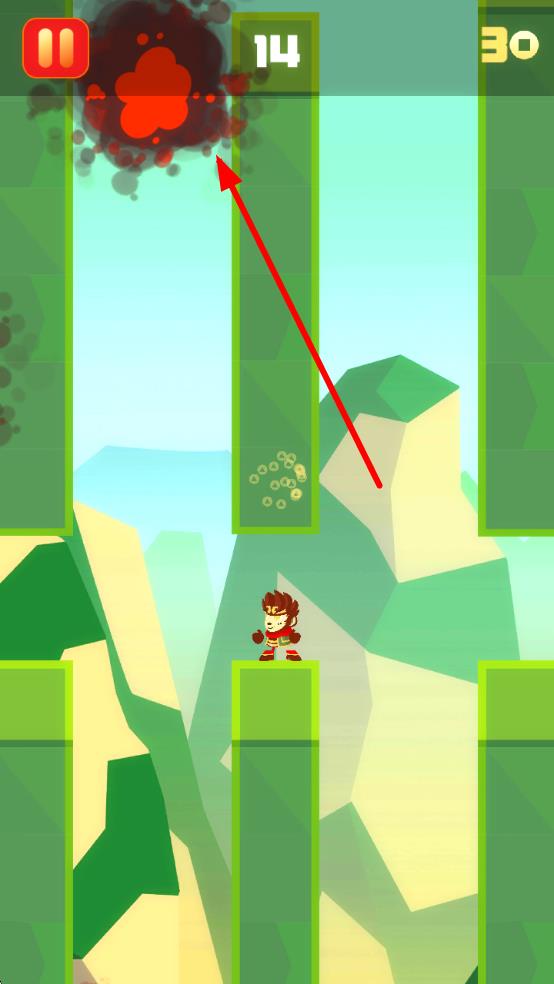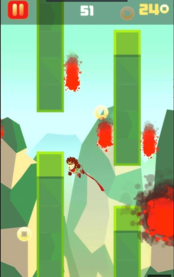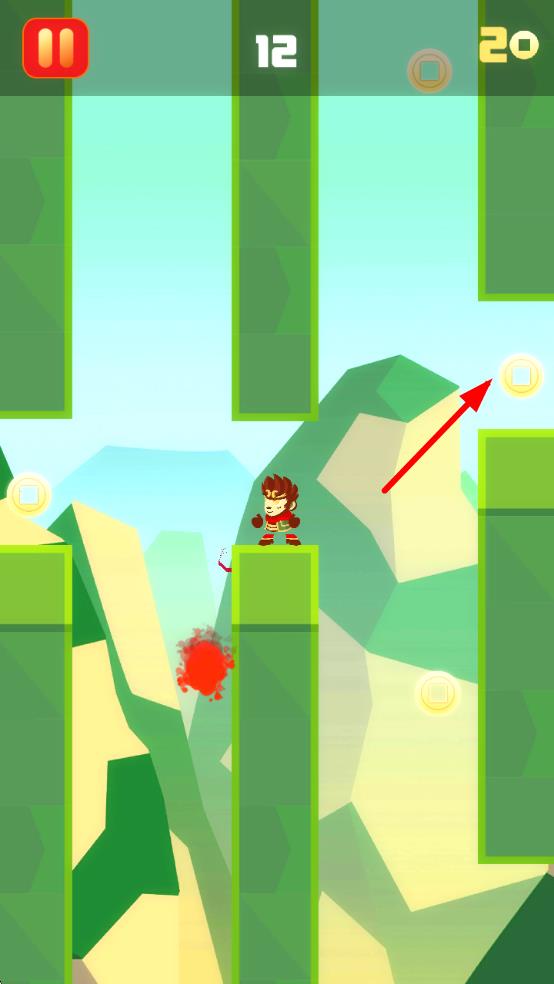 1、进入游戏后,通过点击屏幕控制孙悟空跳跃,按住屏幕可控制跳跃力度与方向。