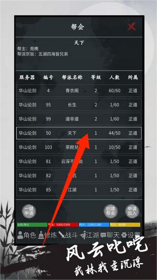 2、可查看各帮会信息,包括帮主、帮派宗旨、服务器、编号、等级、人数等,玩家可选择心仪帮会申请加入,与帮众互动协作,参与帮会活动获取资源和奖励。