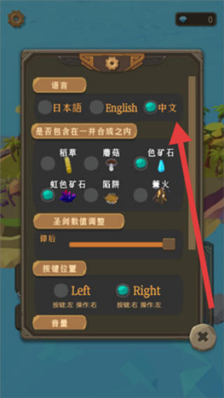 1、在设置界面,点击选择【中文】,将游戏语言设置为中文,方便后续操作。