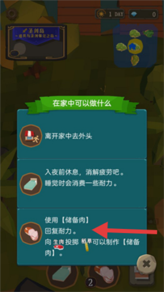 2、在家中功能界面,点击【使用【储备肉】回复耐力】选项,补充角色耐力。