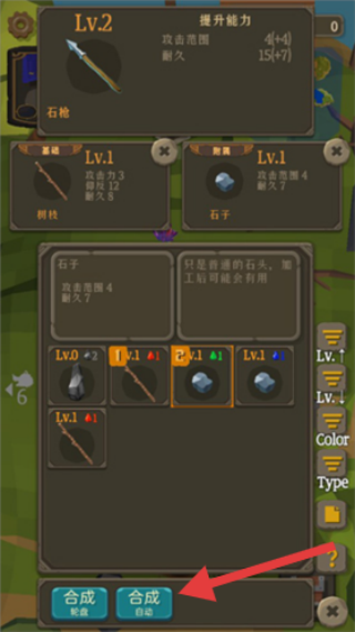 1、策略合成系统:深度理解“等级”与“颜色点数”计算规则,通过不同素材组合合成圣剑,数值搭配影响武器威力与特效,考验资源规划能力。