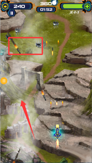 1、进入游戏先熟悉操控方式,左右滑动控制方向,飞机自动发射子弹。