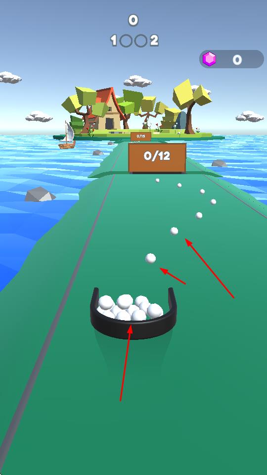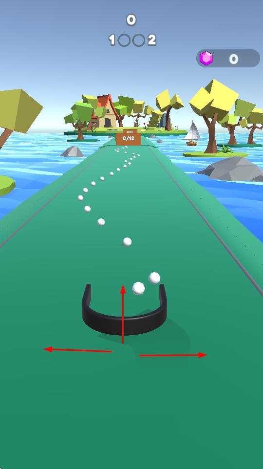 1、玩家操控黑色半圆形容器在绿色道路上左右移动,接住不断飞来的白色小球。