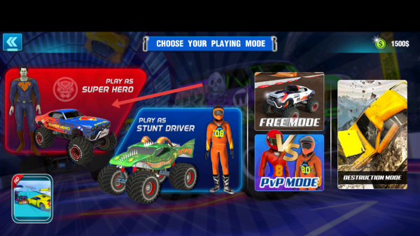 3、在游戏模式选择界面,按箭头指向选择【PlayasStuntDriver】模式,开启特技驾驶挑战。