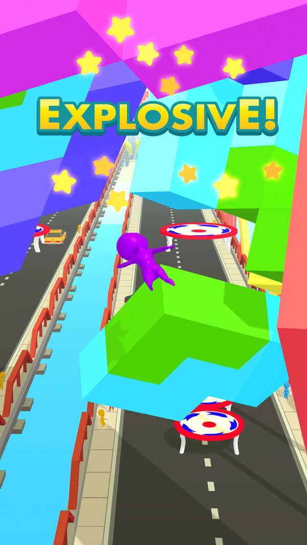 1、多彩角色技能:不同颜色橡皮人拥有专属飞行技能,“窜天猴爆炸”“螺旋炮冲刺”等特效魔性搞笑,增加闯关策略多样性。