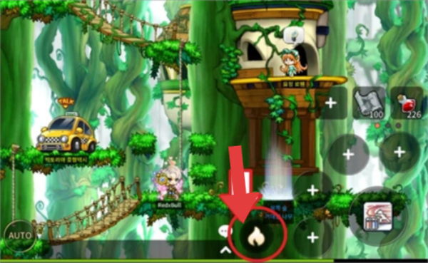 2、点击屏幕下方箭头所指的火焰状技能按键,释放技能应对敌人或场景挑战。