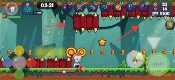2、游戏中需收集金币、星星等道具获取分数,同时躲避尖刺、怪物等障碍,避免角色受伤或失败。