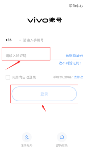3、将收到的验证码输入箭头这里,然后点击登录即可。