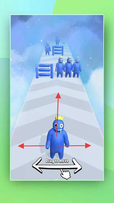 3、玩家操控角色在云端道路上跑酷,按提示“Drag to move”拖动屏幕控制角色移动。