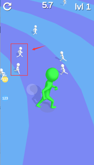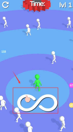 3、操作你自己的人物,将这些白色的小人吃掉。