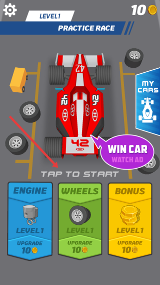 1、在游戏准备界面,点击【TAPTOSTART】按钮,开启【PRACTICERACE】。