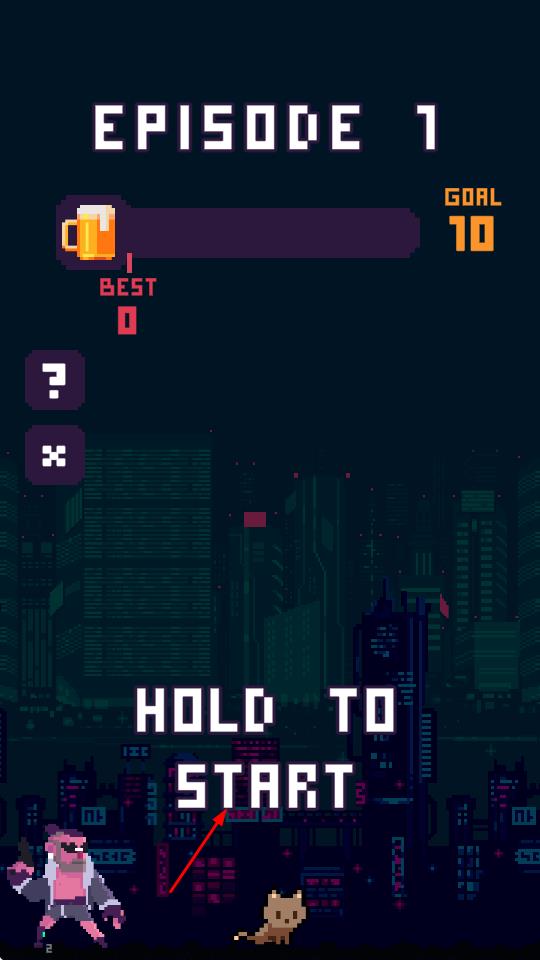 1、进入主界面后,点击【HOLD TO START】按钮,正式开启像素冒险之旅,触发游戏流程第一步。