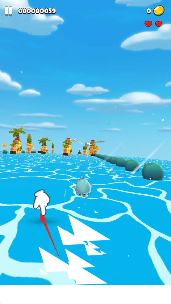 1、跟随屏幕中【白色手指】指引方向操控角色前进,躲避沿途会出现的障碍物。