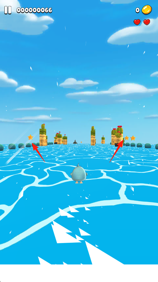 2、前进过程中,要注意道路两旁的【星星】道具可以收集用来增加游戏分数或奖励。