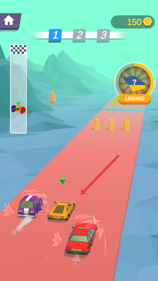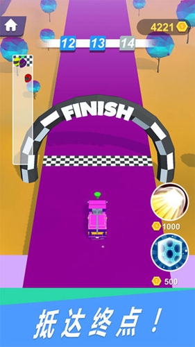 3、策略竞速玩法:根据赛道特性选择加速、漂移或急停,合理利用障碍物间隙与地形优势,实现超越对手的战术性冲刺。