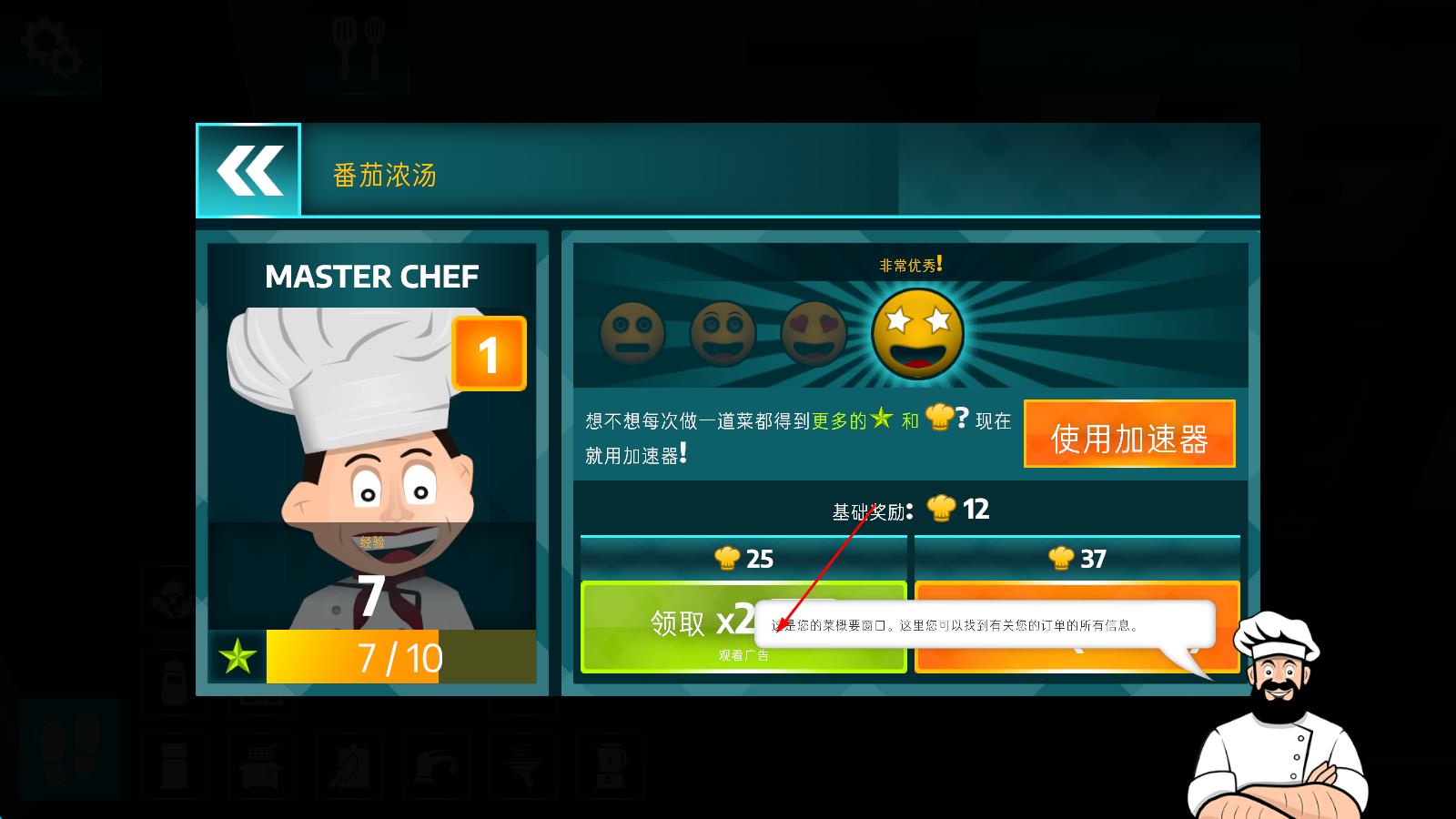 3、历经不断练习与创新,玩家用创意料理征服食客,从厨房新手蜕变为顶级厨师,打造属于自己的美食传奇。