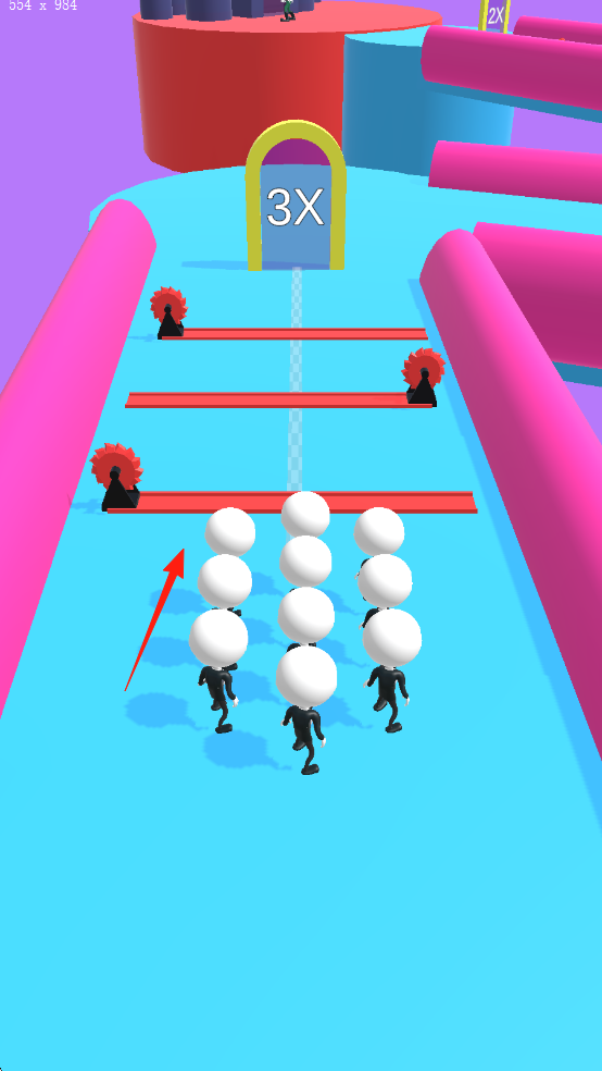 2、遇到狭窄通道或旋转陷阱时,及时调整人群行进方向,通过分散或聚拢策略安全通过,同时留意地图上的加速道具提升移动速度。