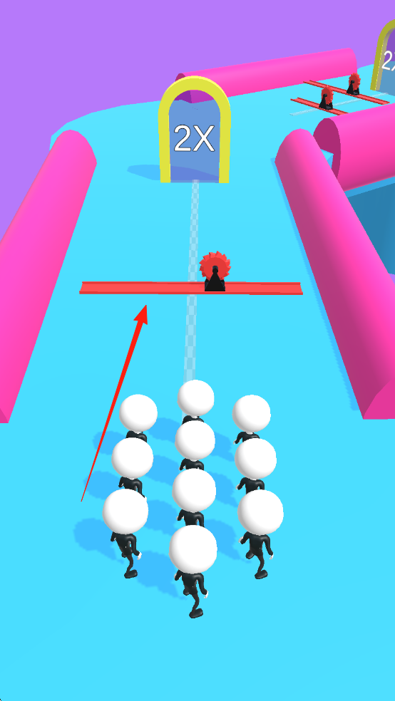 1、进入关卡后滑动屏幕操控人群移动,优先吞噬路径上的零散角色扩大队伍规模,避开红色区域与敌对小团体的碰撞。