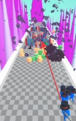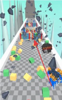 2、赛道上布满石块、彩色方块等障碍,玩家需指挥队伍躲避或清除障碍,避免阻碍前进。