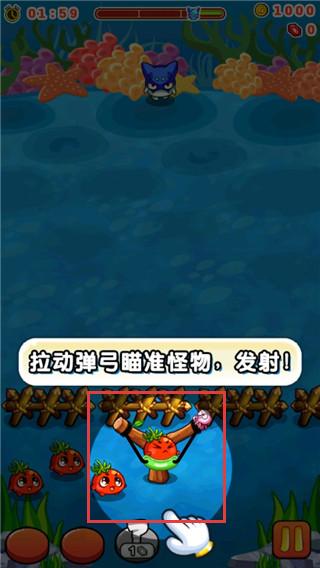 3、拉动弹弓瞄准怪物即可发射蔬菜,长时间拉动蔬菜的话,可以触发狂暴效果。