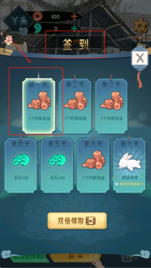 1、每日上线第一时间要查看您的签到奖励哦,得到大量资源,方便后续游戏体验哦。