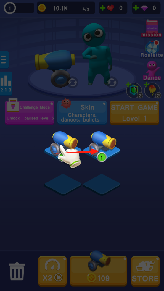 1、在游戏主界面,将相同的炮台进行合并,提升炮台等级,增强战斗能力。