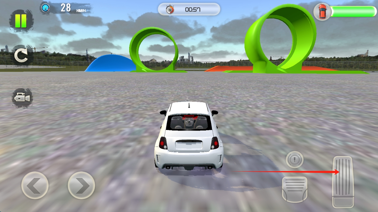 2、点击油门加速,注意收集场景中的特殊道具,可能用于永久属性提升,利用每日登录奖励获取免费车辆试用与加速解锁。