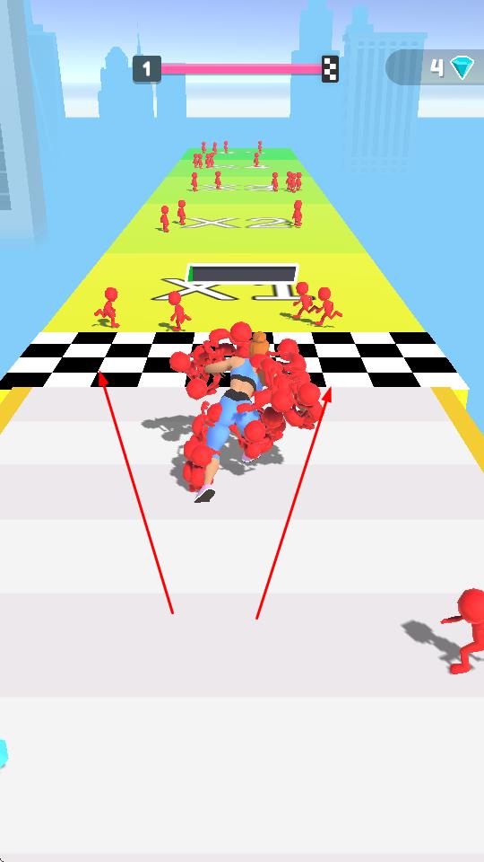 2、奔跑过程中会遇到红色小人敌人,角色可撞击敌人,将其击败并收集,增加游戏进度和奖励。