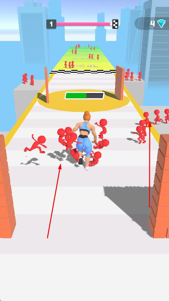 3、画面上方有进度条和标识,玩家需在奔跑过程中达到相应目标,如收集一定数量的敌人或到达特定地点。