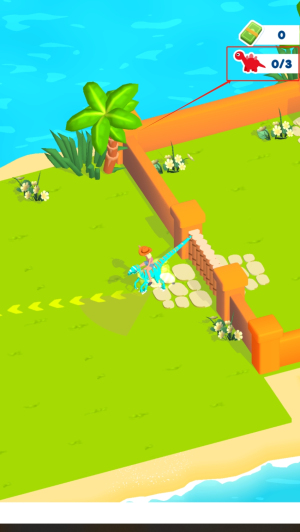 2、控制手机虚拟握把,控制人物去移动,出了家园可以骑在恐龙上移动。