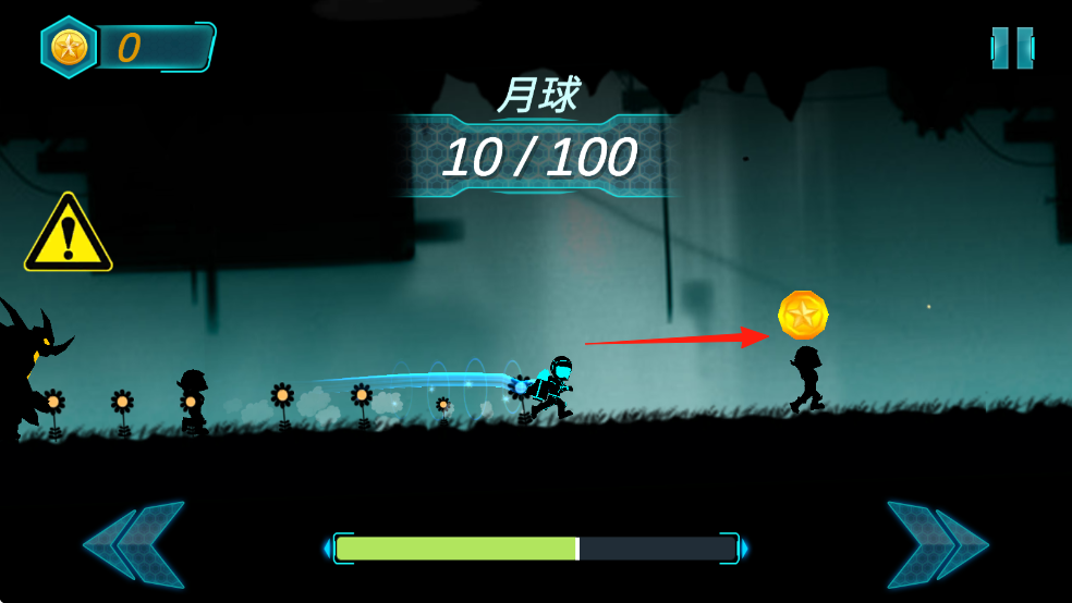 2、游戏过程中,通过屏幕下方的左右方向键控制角色移动,躲避障碍物和敌人。