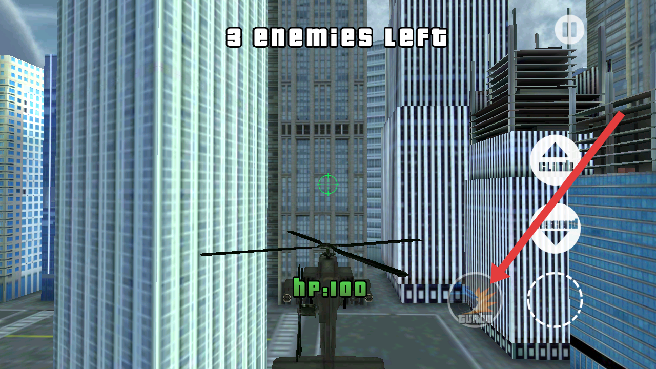 3、在阿帕奇大战坦克的游戏过程中,注意剩余敌人数量,利用右侧操作按钮(如【GUN】)进行攻击。