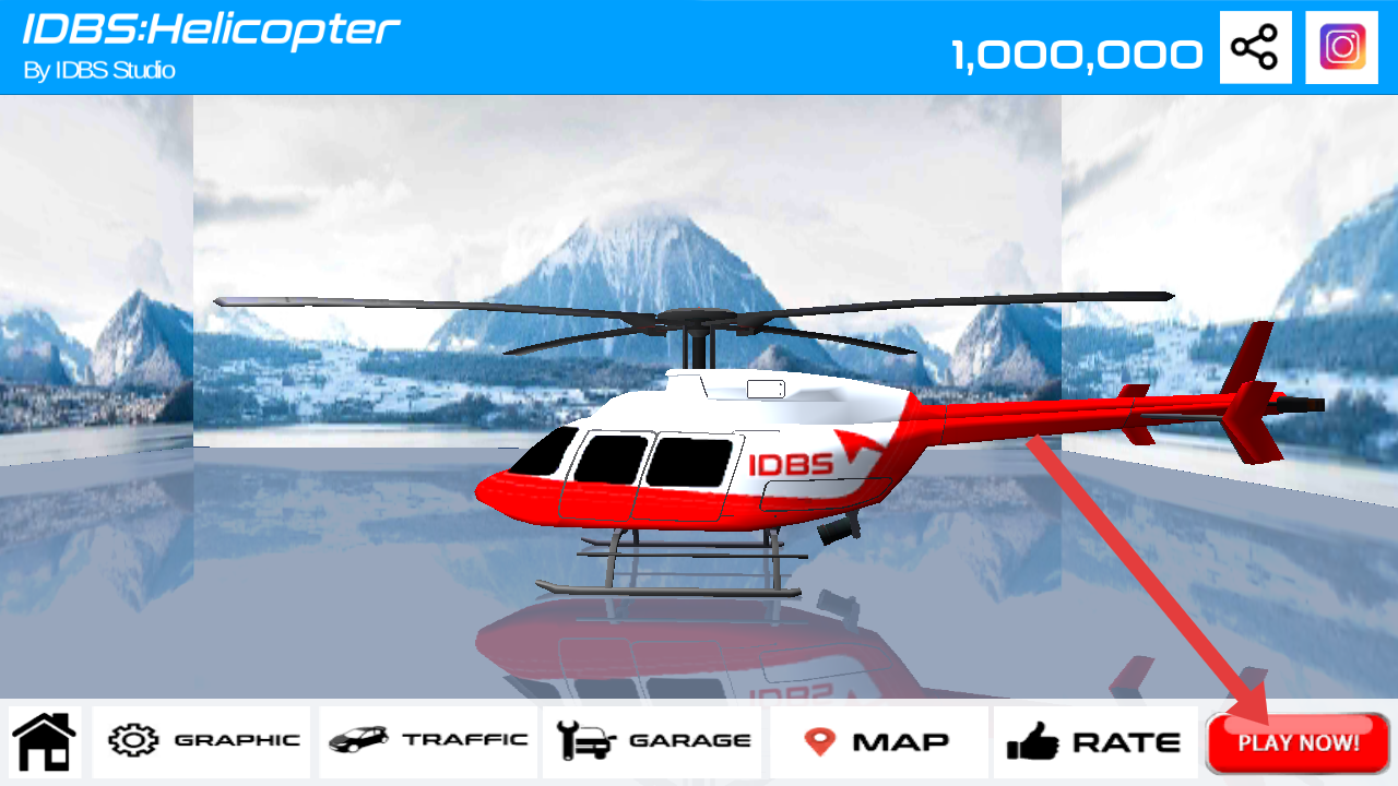1、进入游戏界面,点击右下角红色【PLAYNOW】按钮,启动游戏,开启直升机驾驶之旅。