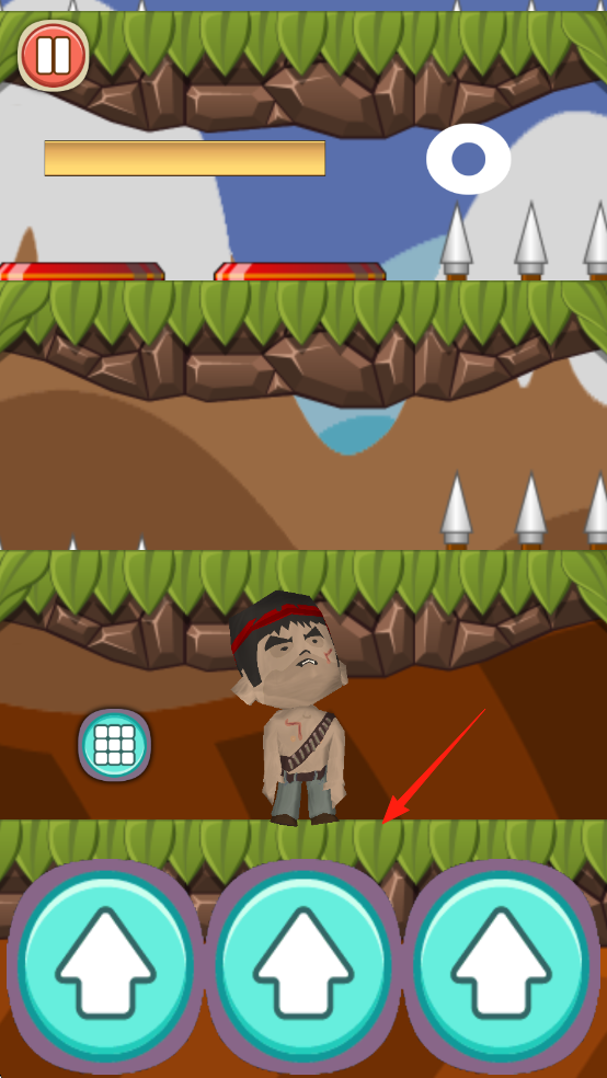 2、游戏过程中,利用屏幕下方的【向上箭头按键】控制角色跳跃,躲避尖刺、陷阱等障碍。