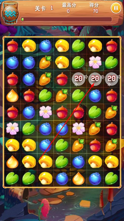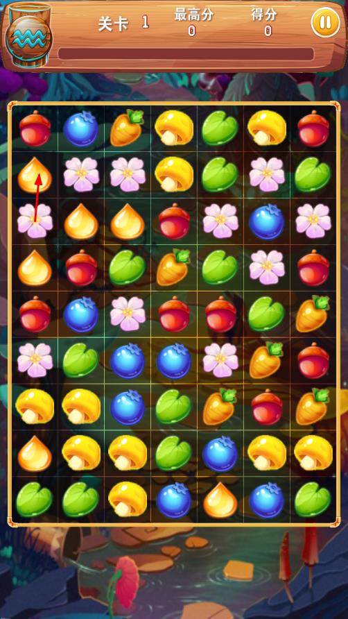 1、进入关卡后观察棋盘布局,滑动屏幕交换蔬菜位置,横向或纵向凑齐3个相同蔬菜触发消除,单次消除4个以上可生成特效蔬菜。