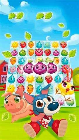 1、萌系农场画风:Q版胡萝卜、卷心菜等蔬菜角色搭配田园背景,色彩明亮清新,搭配逗趣消除音效,营造轻松愉悦的游戏氛围。