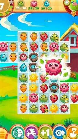 1、特效组合连击:将炸弹与彩虹蔬菜同时消除可触发「全屏清场」效果,连击次数越多分数加成越高,带来爽快感爆棚的消除体验。