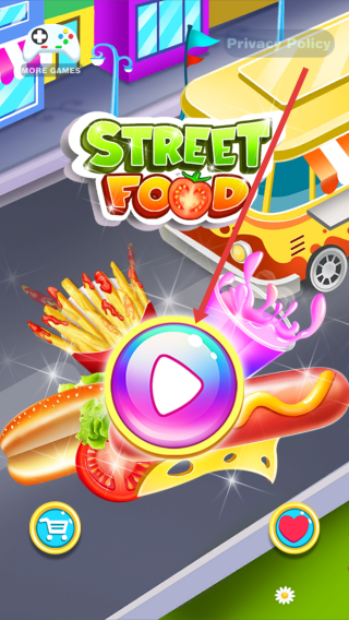 1、打开【Street-Food】后,在初始界面按箭头指示,点击播放按钮,进入游玩流程。