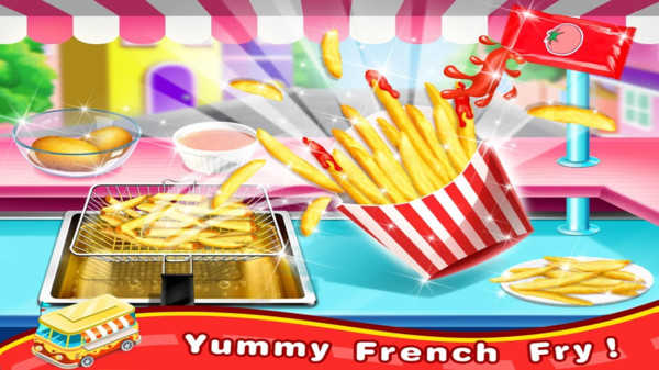 儿童街边小吃是一款Q萌卡通风格的儿童小吃模拟经营作品,你将化身为街边快餐车老板,在绚丽亮眼的场景中制作热狗、薯条、炸鸡块、可乐等儿童喜爱的美食,根据顾客需求精准搭配餐品,赚取金币升级餐车与食材,体验从新手摊主到人气老板的经营乐趣。