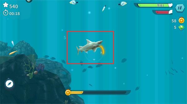 2、触碰屏幕并任意拖动,就可以移动鲨鱼点选并按住不放,就可以爆发加速。