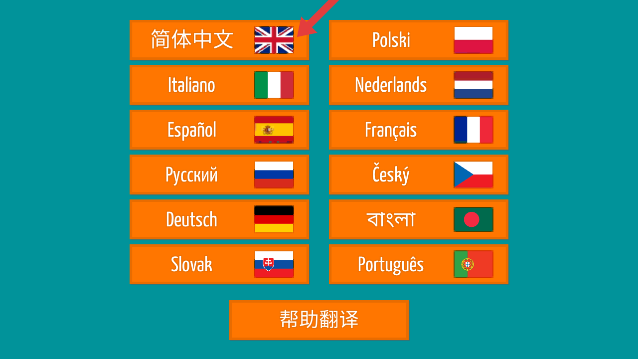 1、在语言选择界面,点击【简体中文】对应的选项(箭头指向处),设置游戏语言为简体中文,方便理解游戏内容。