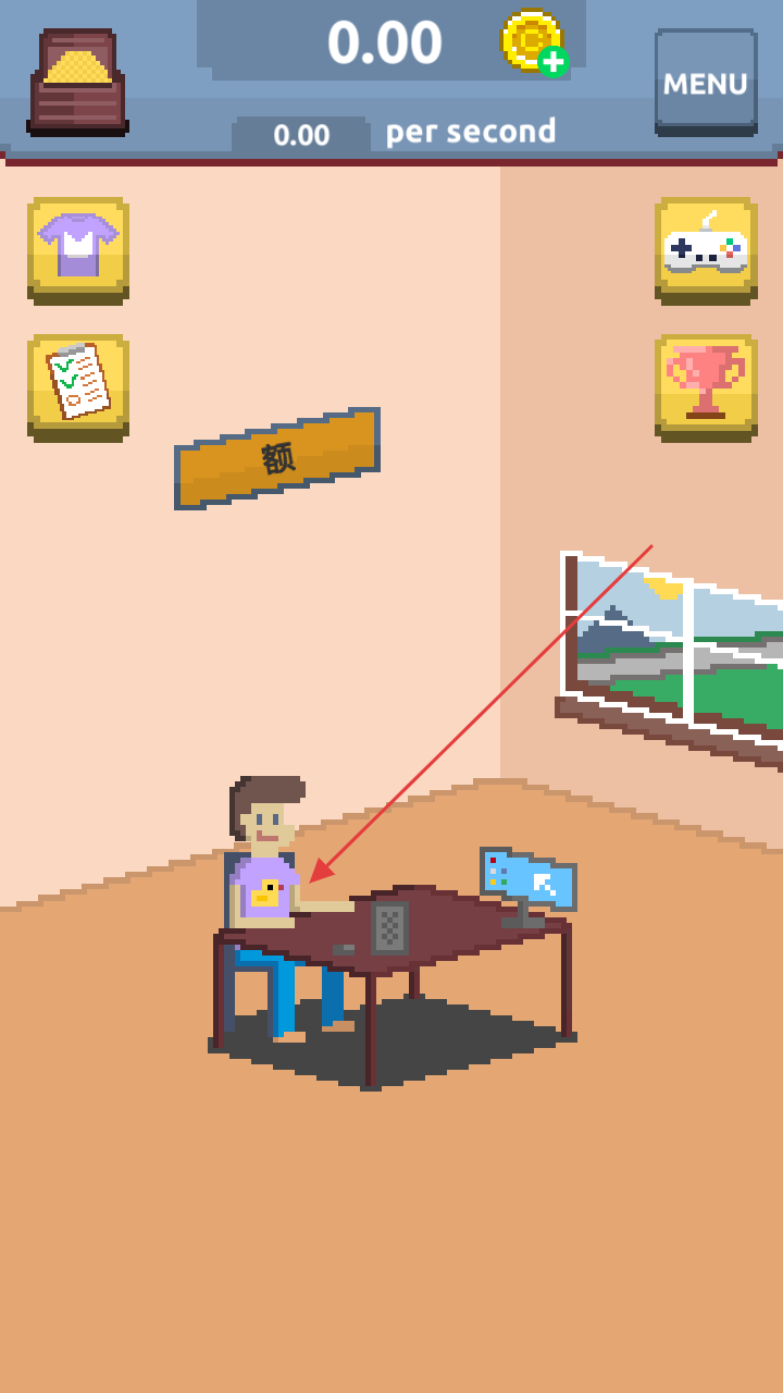 2、进入游戏主界面后,操控角色在电脑前工作,界面上方显示金币数量等信息,可通过点击相关图标操作。