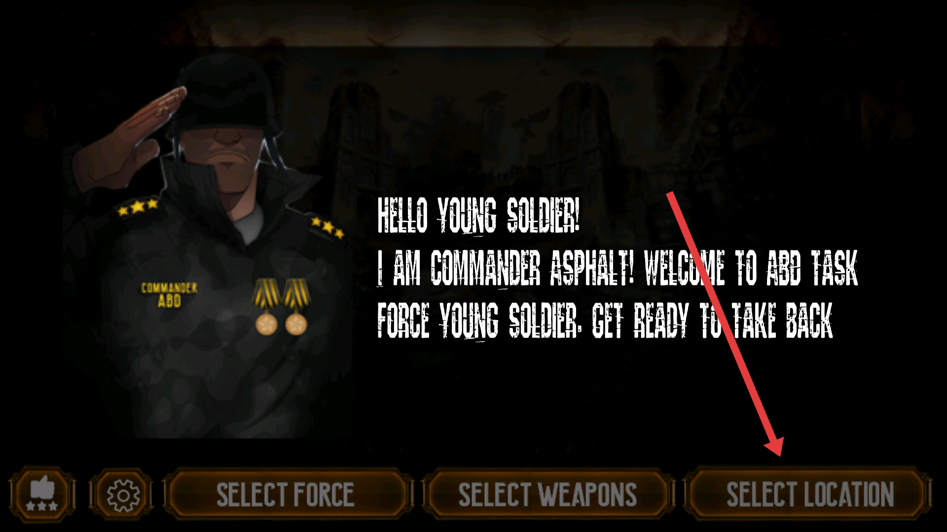 1、打开游戏点击右下角进入地形选择,如果有足够金钱可以先购买武器。