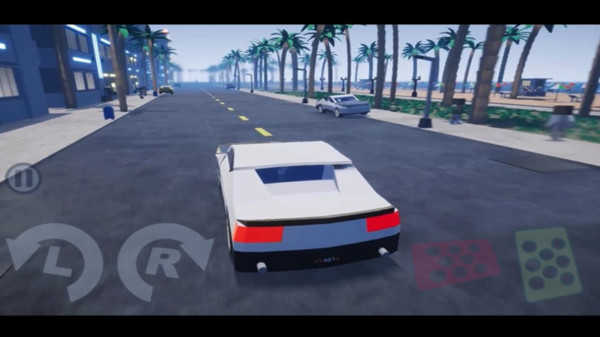 2、进入游玩场景,按箭头指向,利用左下角的虚拟摇杆控制角色移动,熟悉操作手感,在城市街道中探索。