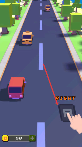 1、游戏中,看到右侧标有【RIGHT】的按钮(箭头所指),点击它可操控车辆向右移动。