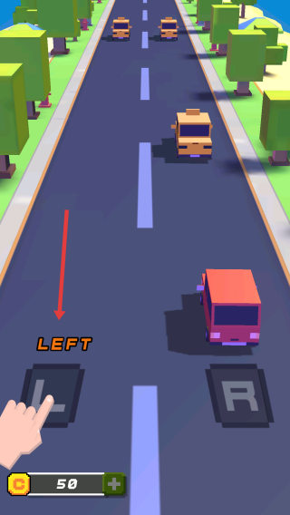 2、接着,按箭头指示点击左侧标有【LEFT】的按钮,让车辆向左移动,躲避前方车辆。