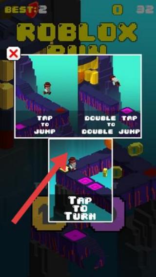 1、根据游戏提示,点击箭头所指区域,按【TAPTOTUMP】【DOUBLETAPTODOUBLEJUMP】【TAPTOTURN】操作控制角色移动。