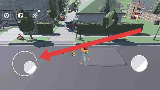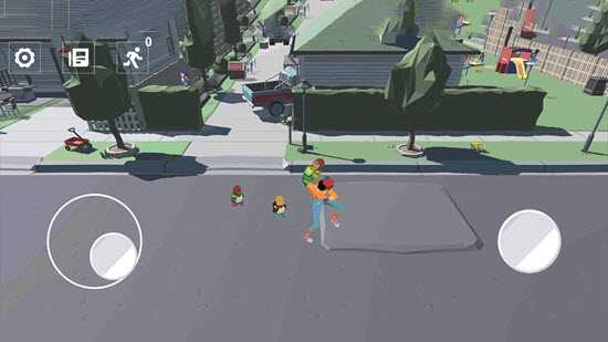2、在街道场景中,按箭头指向,通过左下角的虚拟摇杆控制角色移动,在街道上探索,留意周围环境和可能出现的互动元素。